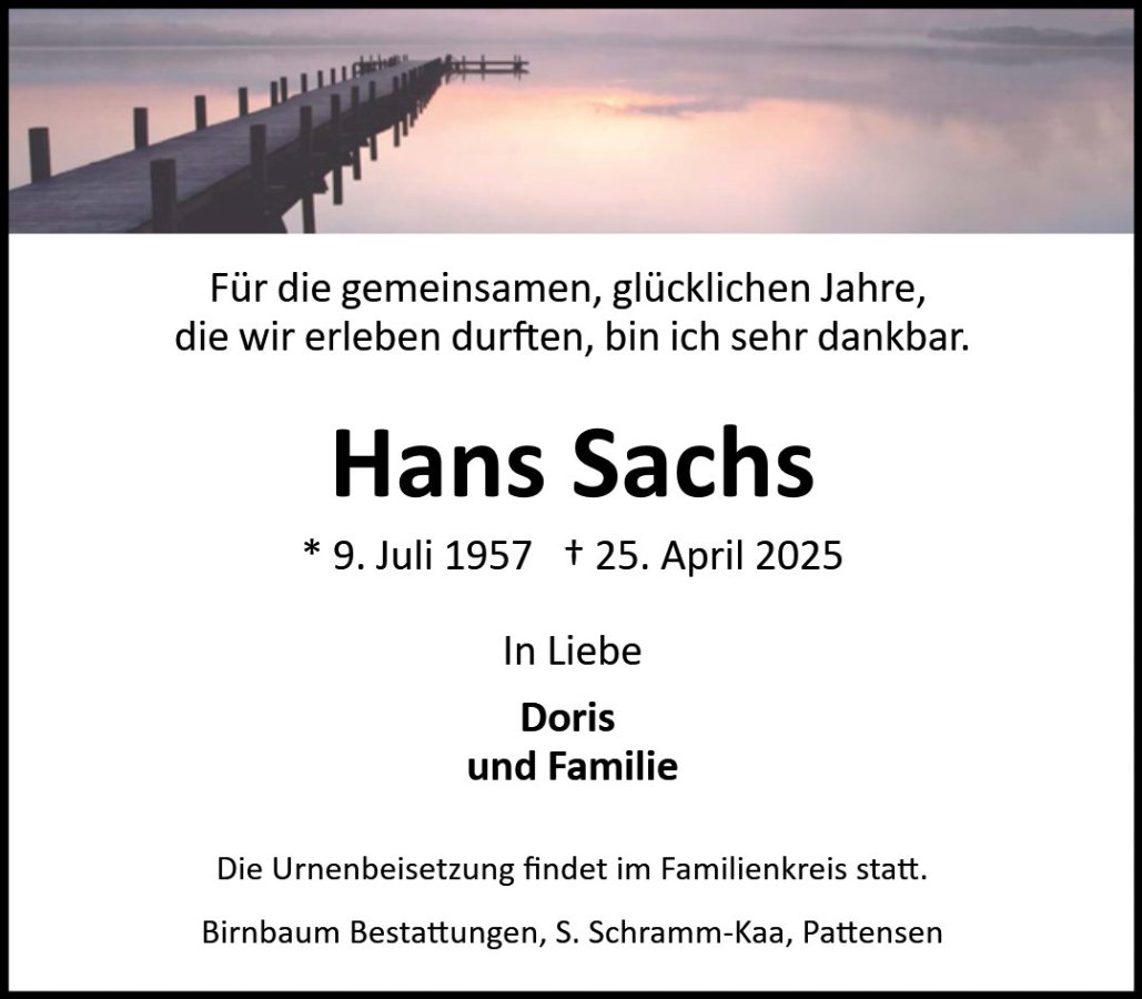 Hans Sachsgestorben am 25. April 2025